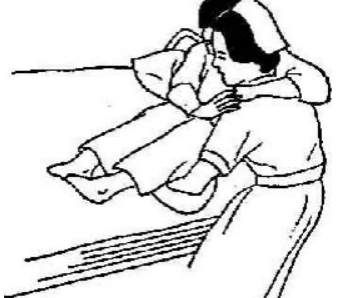 1、 一人搬運(yùn)法(適用于患兒及病情許可,體重較輕者)